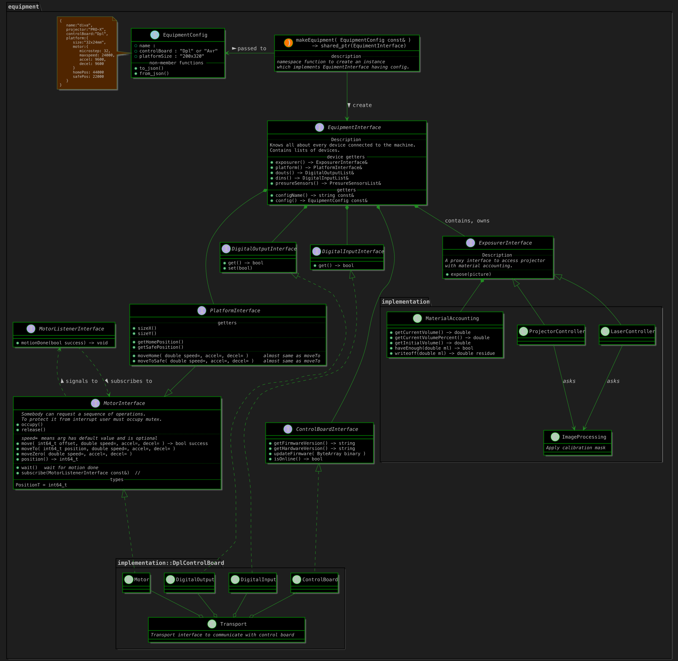 Class hierarchy and relationships of some part of machine control software. It was designed using
